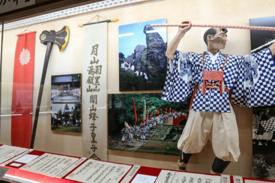 羽黒山頂にある出羽三山歴史博物館は、鏡池から出土した古鏡や10種類もの月山刀など、修験道に関する宝物のほか、山伏や神事に関する史料が多数収蔵される施設。史料を通して、先人たちがどのように祈りを捧げてきたのかを、深く知ることができます。