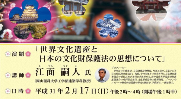 2月9日(土) 備前市にて教育遺産群の魅力や世界遺産登録へ向けての講演会を開催します。