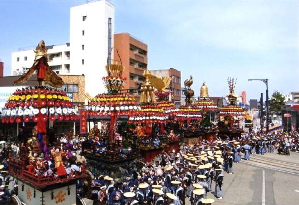 御車山祭はその代表的なもので、七基の御車山には彫金・漆工・染織など高岡の伝統工芸の粋を集めた豪華な装飾が施されている。前田利家が太閤豊臣秀吉から拝領したと伝わる山車を利長が町民に分け与えたことに起源を持ち、各部材の製作・購入・修理等は、開町以来培われてきた町民自身の経済力・工芸技術力によってなされた。高岡の繁栄に比例してそれらの力が増していくにつれて、山車を持つ各町の町民たちが主体となって競い合いながら絢爛豪華な装飾を施すようになった。現代まで受け継がれて毎年の祭日(5月1日)に町中を巡行している様子は貴重なものである。