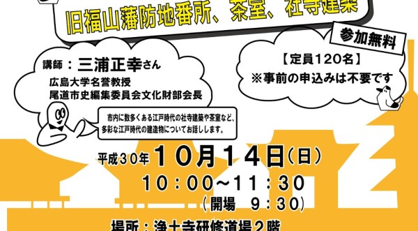 尾道市内にある江戸時代の歴史的建造物の魅力についての講演会です