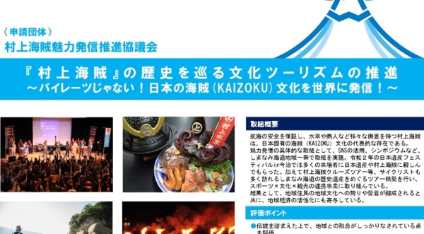 村上海賊魅力発信推進協議会がスポーツ文化ツーリズムアワード2021で「文化ツーリズム賞」を受賞しました