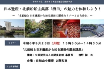日本遺産・北前船船主集落「酒田」の魅力を体験しよう! ~ 「北前船と日本遺産から知る酒田の歴史セミナーとまち歩き」~