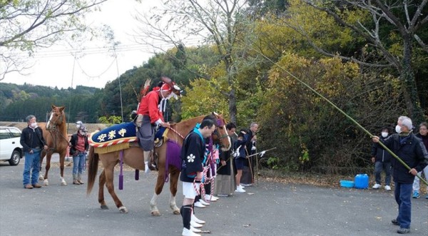 11月25日(木)熊本県玉名市の梅林天満宮にて「梅林天満宮例大祭」が行われ、構成文化財である『流鏑馬』が奉納されました。