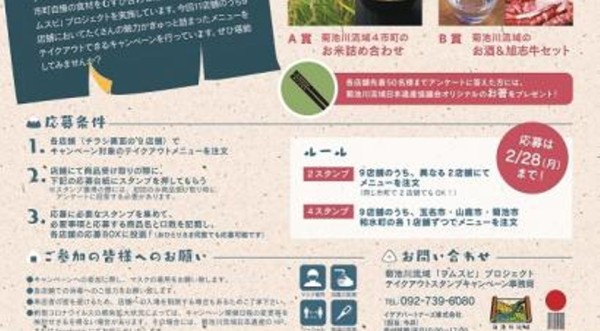 菊池川流域の「おいしい」米を使った「食」の魅力を発信する『テイクアウトスタンプキャンペーン』を実施しています。