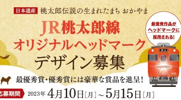 JR桃太郎線等を運行する列車のヘッドマークのデザインを大募集!また、岡山県内の小学生以下を対象に「桃太郎伝説」をテーマにした絵画コンクールも同時開催します。