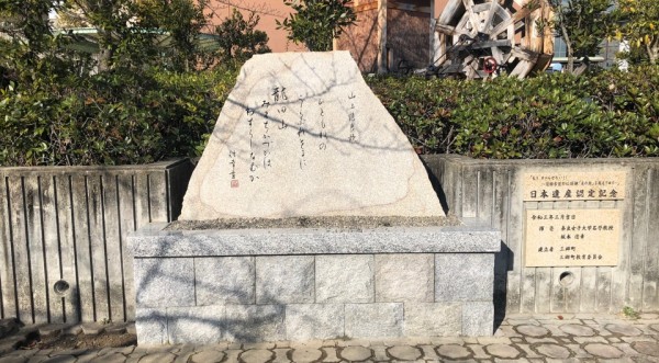 日本遺産認定を記念し、近鉄信貴山下駅前広場に万葉歌碑を建立致しました。